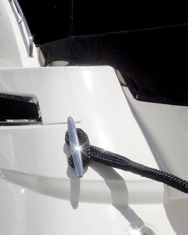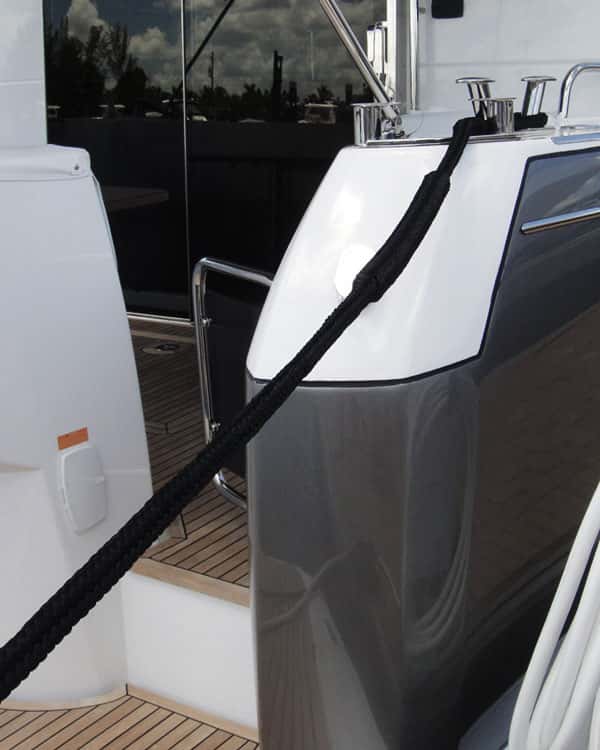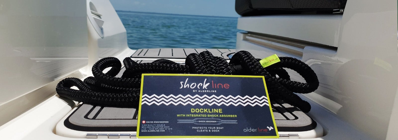 Our swiss engineered dock line protects the fittings on your boat by absorbing the shock caused by storm and surge while limiting the stretch, keeping your vessel safe and clear of the dock. Try it out - our dock line with integrated shock absorber.